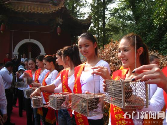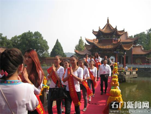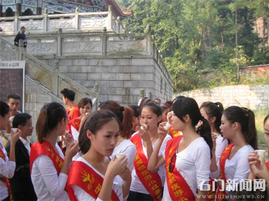 下午2时20分,20位婀娜多姿的中国国际旅游小姐来到千年古刹——夹山寺,进行鸟、龟、鱼等动物的放生仪式,在大雄宝殿肃立诵经,感受禅门第一书《碧岩录》之韵,品尝千年贡品石门夹山牛抵禅茶。在闯王陵,佳丽们为纪念闯王李自成诞辰405周年进献了花篮。在风景如画的“茶道源头”——碧岩泉广场,佳丽们为弘扬茶禅文化演绎新时尚,注入新活力,精彩的时装走秀和才艺表演,激起了近千名观众和游客的阵阵掌声和喝彩。