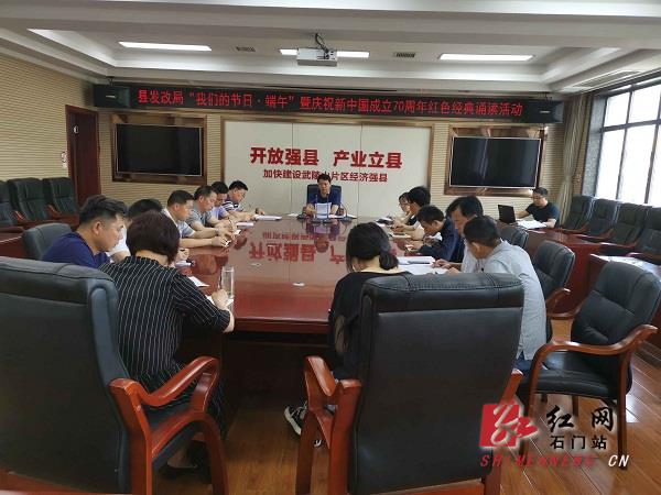 6月4日上午,县发改局在局机关举办经典诗词诵读活动。干部职工诵读包括《七绝·屈原》、《九歌·国殇》、《离骚》、《七律.端午》等中华优秀经典诗词以及《祖国放歌》《你从梁家河走来》《信念永恒》《盛世中国》《美丽中国》等红色经典篇目。活动中,干部职工接受了一次生动的爱国主义教育洗礼,一致表示要不忘初心,牢记使命,发扬红色革命精神,继承民族优良传统,干好本职工作。