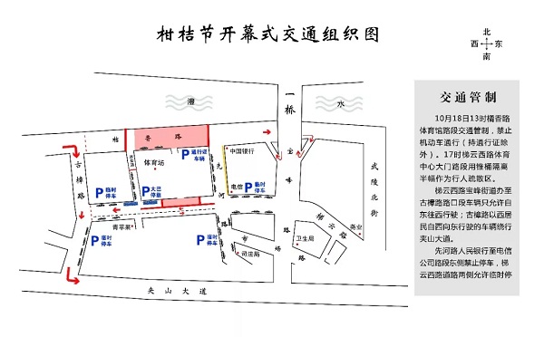 为确保2019石门柑橘节暨文化旅游周活动安全、顺利进行,根据《中华人民共和国道路交通安全法》的有关规定,决定于2019年10月16至18日对城区部分道路实行临时交通管制。现将有关事项通告如下: