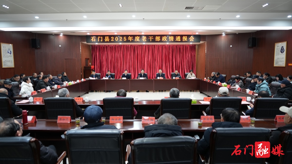 1月20日,县委书记李长春主持召开石门县老干部政情通报会,通报2025年全县经济社会发展情况和2026年重点工作安排。县委副书记、代县长张世田出席会议并作政情通报。