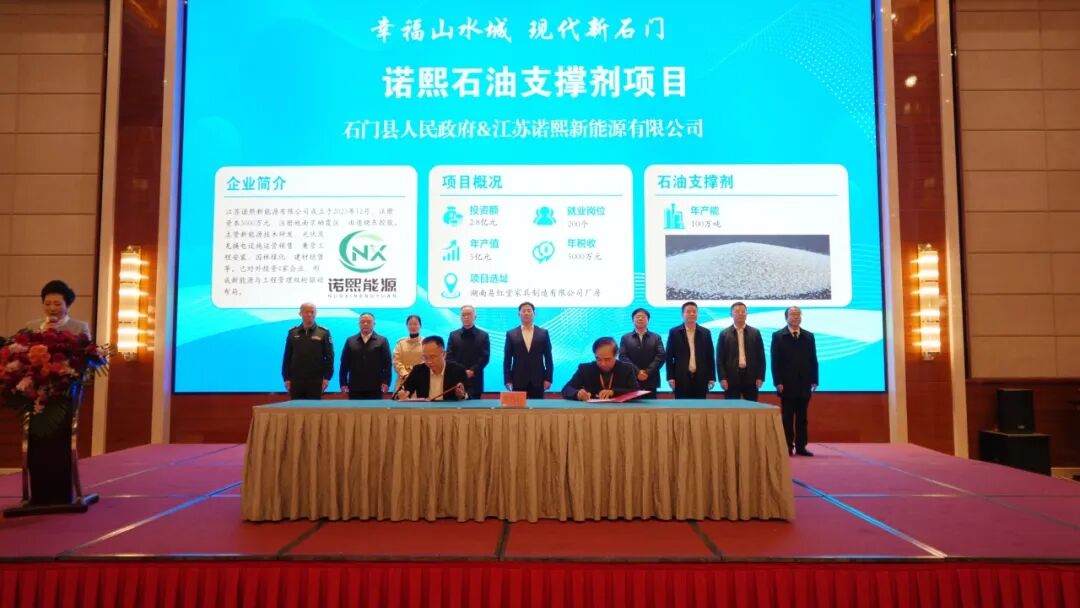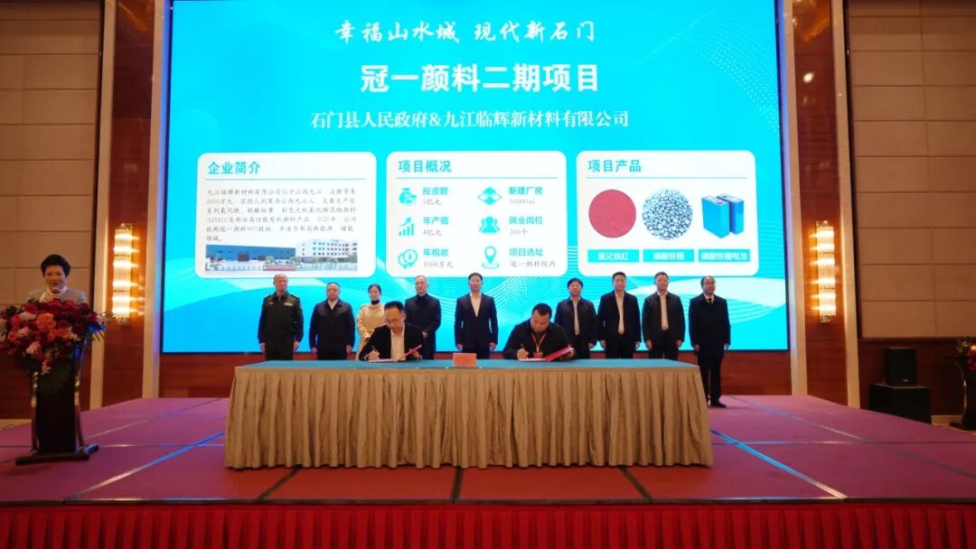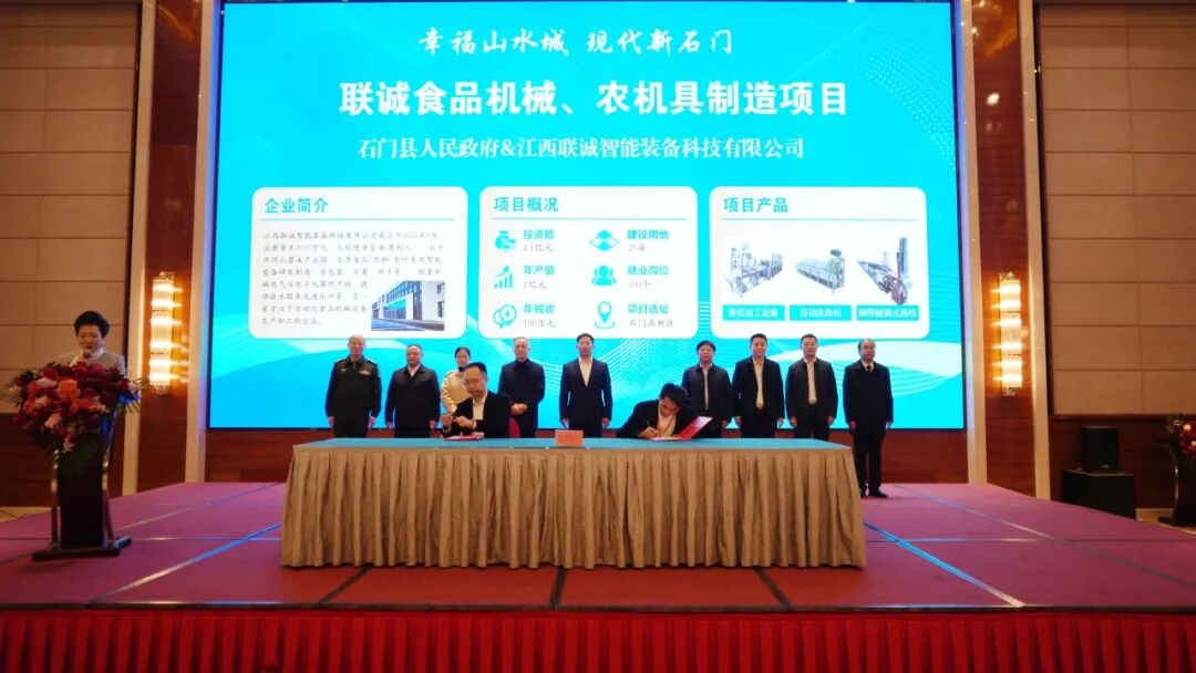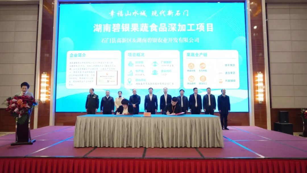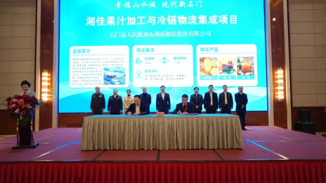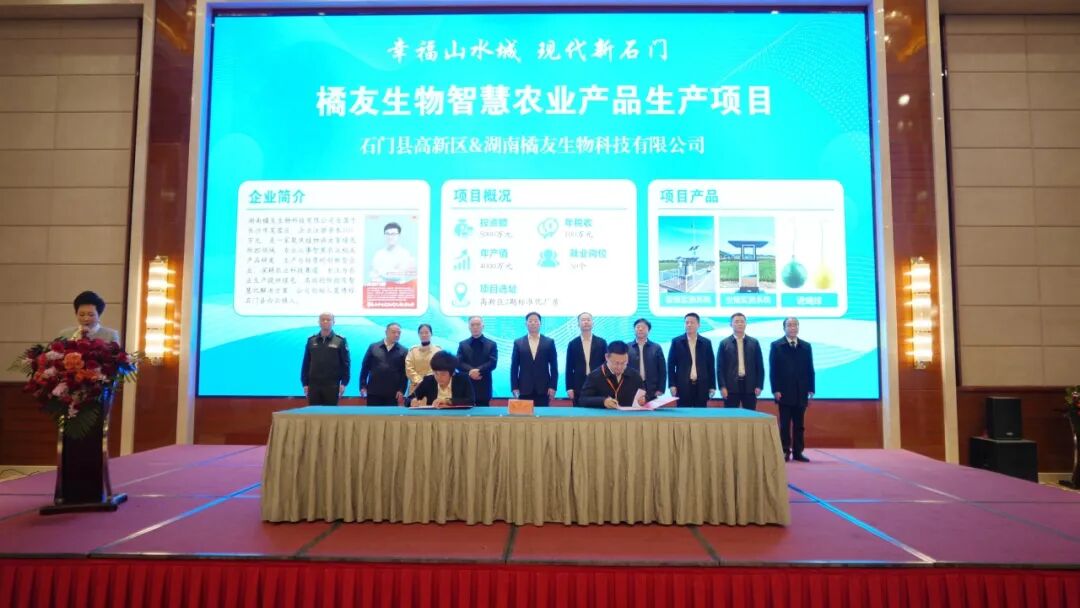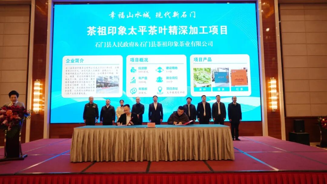 团拜会现场举行了重点项目签约仪式。湖南湘佳股份有限公司、力江临辉新材料有限公司、江苏诺熙新能源有限公司、江西联诚智能装备科技有限公司等10家企业代表上台签约,项目涵盖农产品精深加工、新材料、新能源等多个领域,投资规模大、带动能力强,将为石门产业转型升级注入新动能。