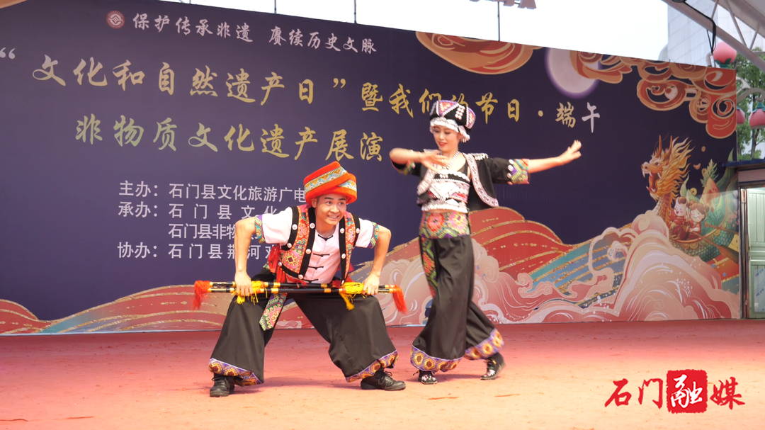 6月14日,石门县2024年“文化和自然遗产日”非物质文化遗产展演在宝峰公园举办。