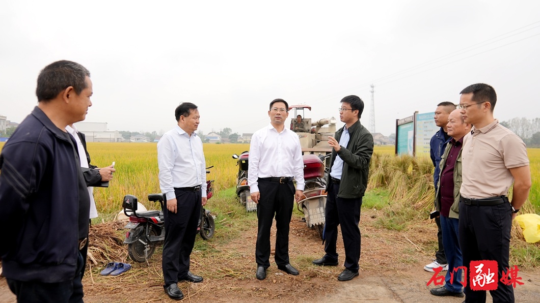 李长春先后来到蒙泉镇梅家河村石门县惊鸿粮油专业合作社、下七里村、白洋湖社区石门县湘恒农机专业合作社,详细了解粮食播种面积、亩产预期和秸秆“五化”工作情况。