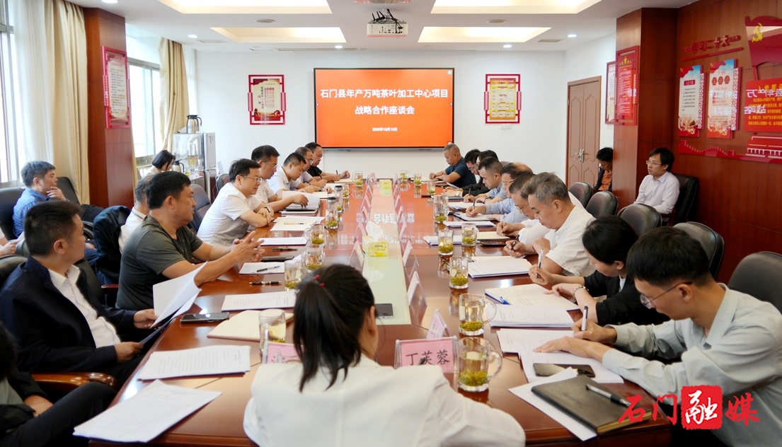10月13日,县委书记吴兴国,县委副书记、县长李长春率队到湖南省茶业集团股份有限公司考察,与湖南省茶业集团董事长周重旺及公司高管就石门茶叶品质提升、品牌打造和标准化生产等事宜进行座谈交流,并见证石门县年产万吨茶叶加工中心项目框架合作协议的签订。