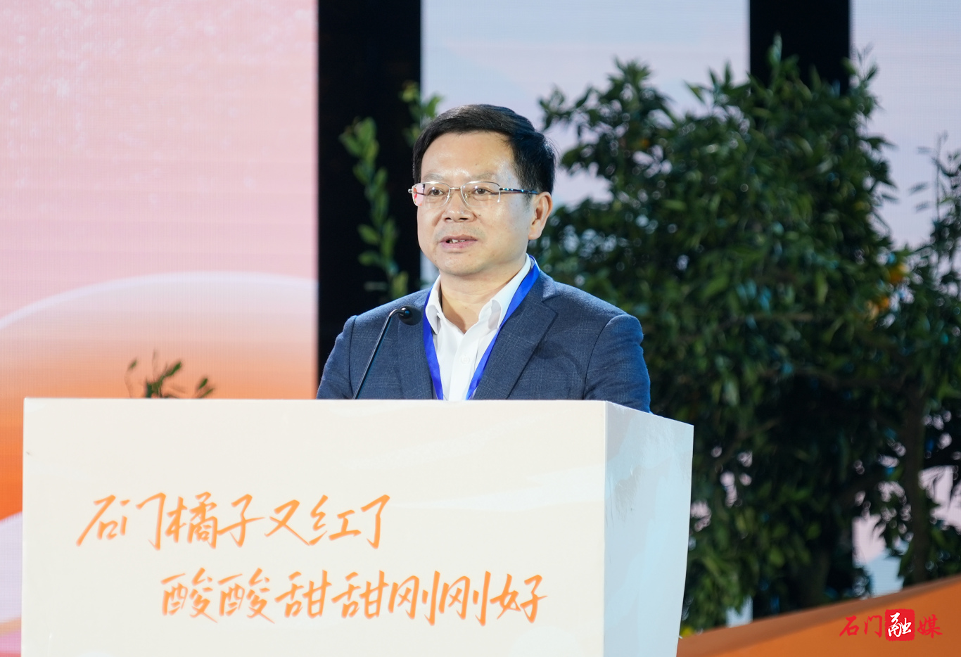 吴兴国在致辞中指出,近年来,石门县深入学习贯彻习近平总书记关于“三农”工作的重要论述,坚持“北茶南橘中药”农业产业布局,大力推进柑橘产业高质量发展,中国柑橘之乡、中国早熟蜜橘第一县等“国字招牌”越擦越亮,石门柑橘的影响力、知名度越来越大。这次柑橘产销季活动精心组织了“柑橘迎贵客、柑橘出国门、柑橘进高校、柑橘促文旅、柑橘话未来”等系列活动,是石门柑橘丰收的大礼赞,是石门产业发展的新起点。你来石门、尽我所能,奔赴美好、你我同行,期待各位客商和嘉宾走进石门,了解石门,扎根石门,石门将以最好的环境、最优的服务、最美的形象,与大家一道共绘发展蓝图、共创美好未来。