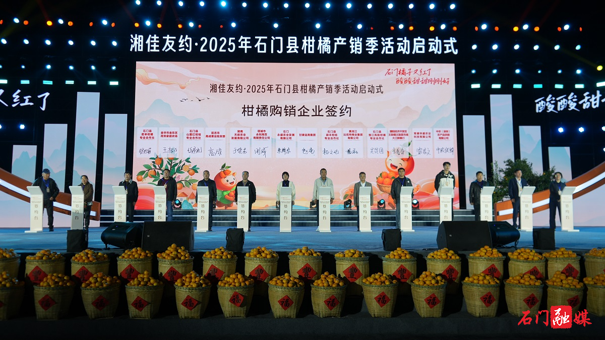 石门橘子又红了,酸酸甜甜刚刚好。10月25日晚,湘佳友约·2025年石门县柑橘产销季活动在石门县宝峰公园启动。